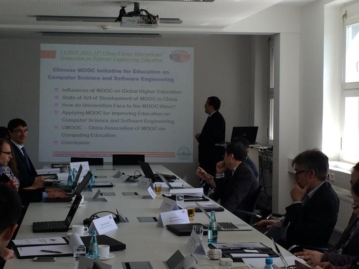 本次会议得到了中国和欧洲大学教育者、工业专家及相关学术组织的支持;来自中国、德国、英国、法国、意大利等国40多位专家学者出席了本次研讨会。公司徐晓飞教授担任会议程序委员会主席,并做了“中国计算机科学与软件工程教育MOOC创新教育”的大会特邀报告。张羽、孙成杰、陳鄞、初佃辉等先后宣读4篇论文,涉及实验教学翻转课堂研究、MOOC教学模式实践、实验教学改革等方面,引起与会代表的关注和兴趣。会议期间,哈工大代表团还与茨维考应用科技大学进行了学术交流,探讨了今后开展合作的可能。