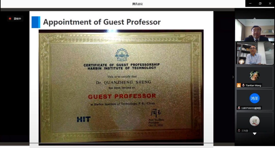 计算学部百人百家国际学者系列报告之三——麦考瑞大学 Quanzheng Sheng哈工大客座教授聘任仪式