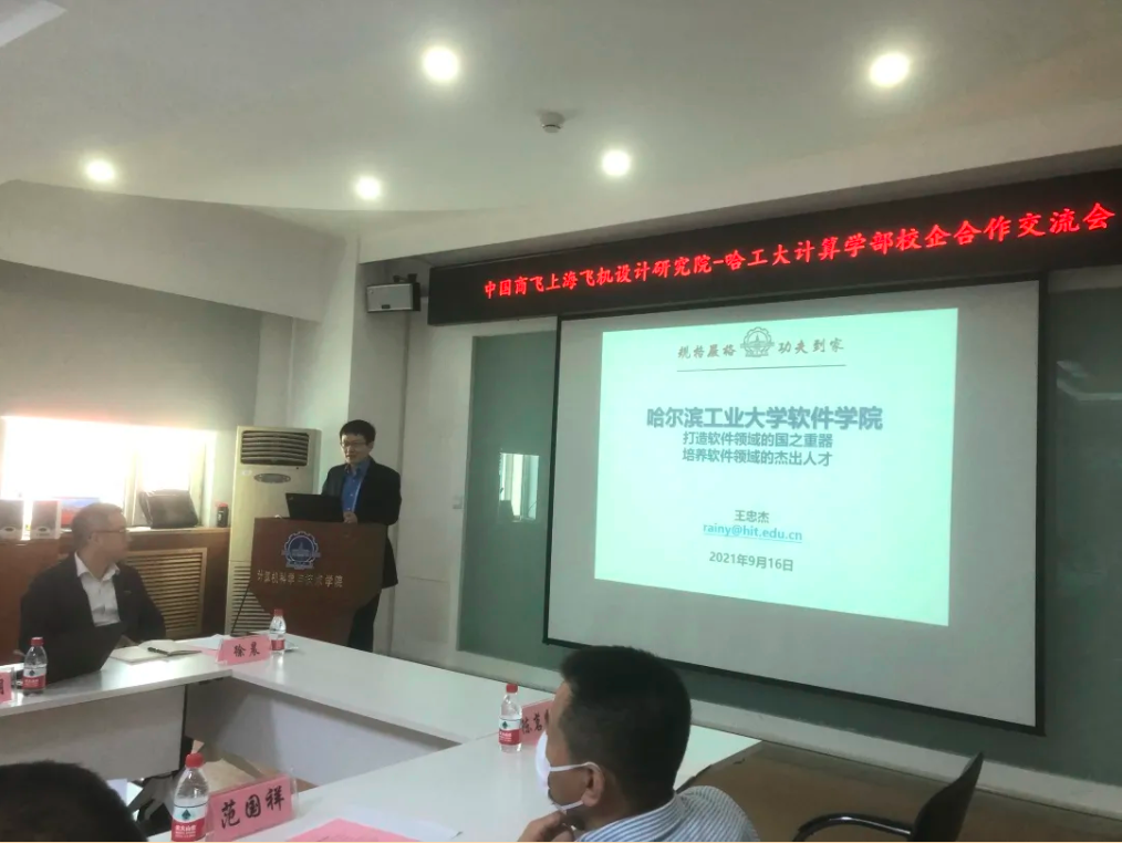 随后,郭建伟部长也对上飞院的基本情况做了介绍,上海飞机设计研究院是中国商用飞机有限责任公司设计研发中心,承担着我国ARJ21、C919、CR929等型商用飞机项目的设计、试验、预研及关键技术攻关等历史使命。而此次来访的飞机电控集成工程技术所承担飞机航空电子、飞行控制、电气系统等关键核心设备的研制工作急需大量的软件专业人才,希望与哈工大计算学部共同建立校企战略合作紧密融合的长效机制,培养具有国际视野的大飞机软件专业技术人才。