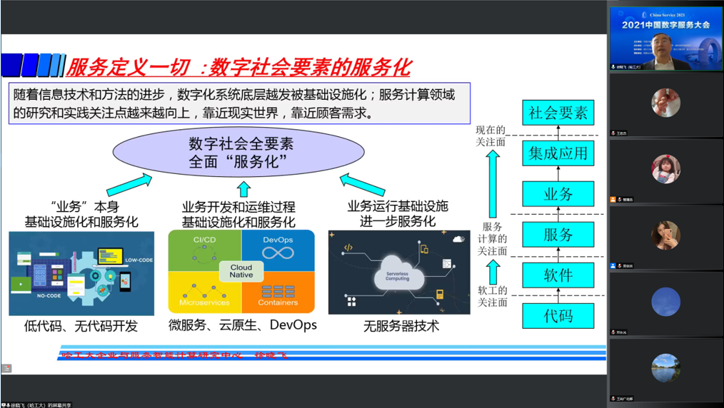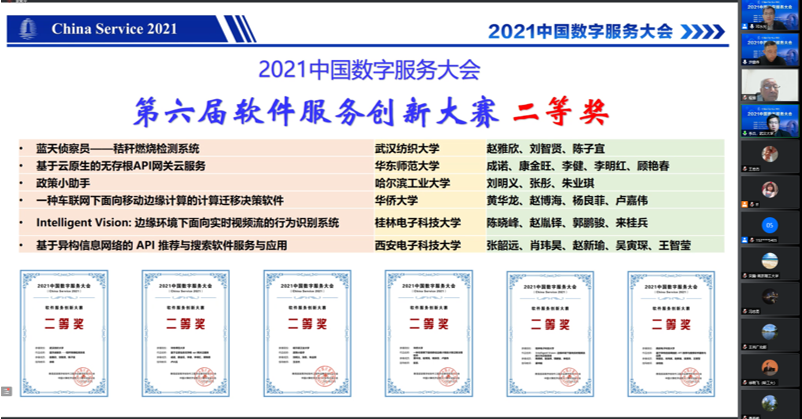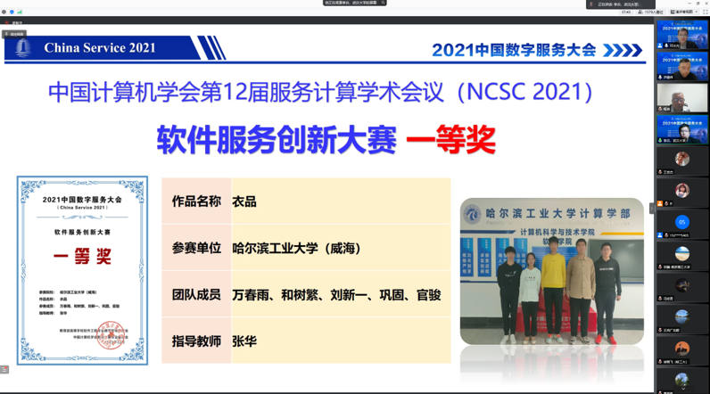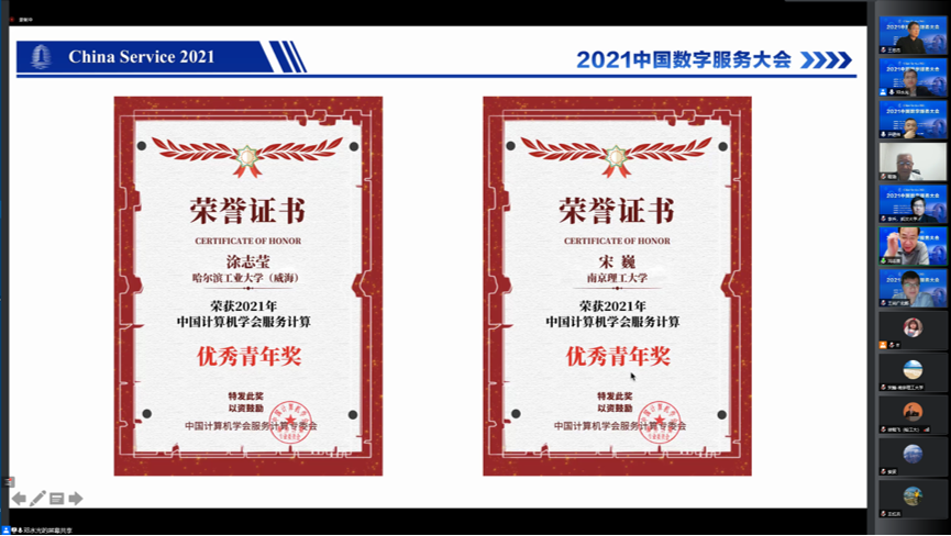2021年12月2日至4日,2021中国数字服务大会(China Service 2021)在线上召开。本次会议由中国计算机学会主办,中国计算机学会服务计算专业委员会(CCF TCSC)、浙江大学、湖州市科学技术局共同承办,大会以“数字服务、跨界融合、协同创新”为主题,邀请产学研界嘉宾,举办行业与学术论坛,共话数字服务的挑战和机遇。哈工大计算学部ICES中心一校三区30余位师生参加了本次学术会议。