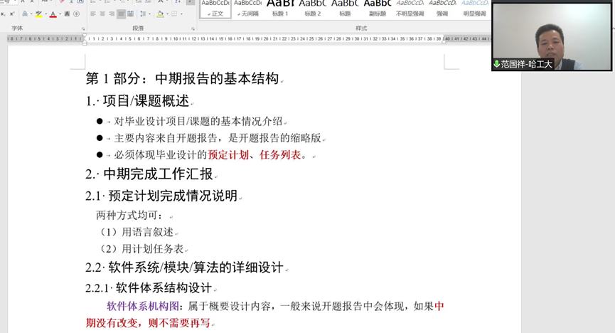 在讲解中期报告的基本结构时,范老师对软件体系结构设计、功能结构设计、功能详细设计、功能逻辑设计等不同类型的设计该如何组织中期报告的内容分别进行了讲解,更加清晰、有针对性地为同学们答疑解惑。