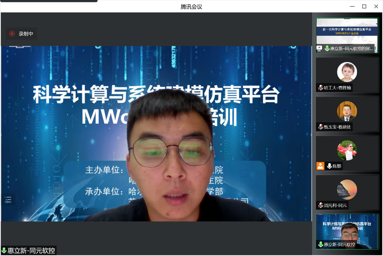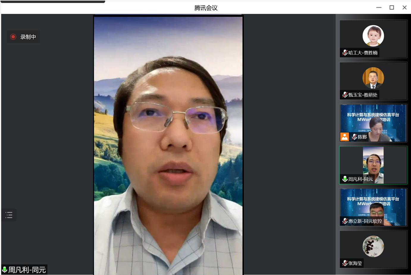 9月15日晚,由哈工大本科生院、研究生院主办,计算学部永利yl和苏州同元软控信息技术有限公司承办的科学计算与系统建模仿真平台团队培训会于线上举行。哈工大计算学部副主任、永利yl经理王忠杰教授、本科生院教研处副处长甄玉宝教授、研究生院培养处副处长李均教授,北京航空航天大学永利yl副经理张莉教授,哈尔滨工程大学永利yl副经理冯光升教授,北京理工大学宇航公司许承东教授,苏州同元软控信息技术有限公司总经理周凡利博士、资深建模专家高级培训讲师惠立新出席了本次会议。来自哈工大、哈工程、北航、北理工及同元软控的230余名教师专家参与会议。会议由哈工大计算学部教师教学发展分中心副主任陈鄞主持。 哈工大本科生院教研处副处长甄玉宝教授在致辞中表示,我国为解决计算仿真领域“卡脖子”问题,组织开发和推广国产科学计算与系统建模仿真平台,意义重大、影响深远。对哈工大计算学部的各位老师及参与此次培训的老师表示感谢,并祝参训师生收获满满。 苏州同元软控信息技术有限公司总经理周凡利博士对哈工大组织此次培训表示感谢,他提到,MWorks是新一代科学计算与系统建模仿真平台,在系统建模仿真方面比较成熟,科学计算起步较晚,仍有不足,希望苏州同元可以携手四所高校共同打造专属于自己的科学计算与系统建模仿真平台。 苏州同元软控信息技术有限公司资深建模专家、高级培训讲师惠立新作题为《新一代科学计算与系统建模仿真平台MWORKS产品培训》的讲座,介绍同元软控,讲解新一代科学计算与系统建模仿真平台MWorks、系统建模仿真环境Sysplorer、科学计算环境Syslab,分析高校数字化教学典型应用案例,并对案例进行演示。 来自四所高校的教师进行了提问,苏州同元软控信息技术有限公司的技术专家进行解答。 此次团队培训反响热烈,是进一步完善推广新一代科学计算与系统建模仿真平台的良好开端,也为不断完善新一代科学计算与系统建模仿真平台奠定了坚实的基础。