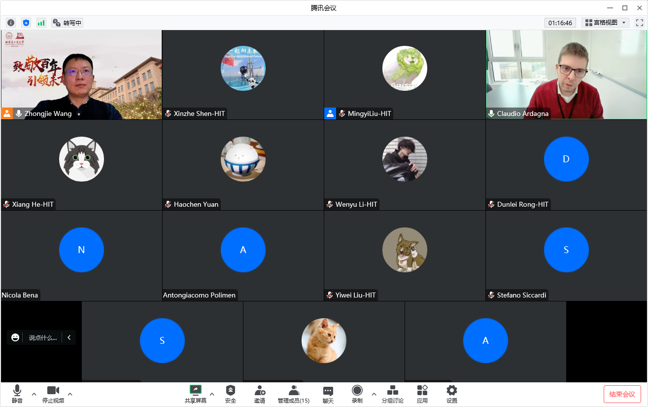 2022年12月13日,永利ylICES研究中心王忠杰教授服务计算团队与意大利米兰大学Claudio Ardagna教授安全服务架构团队举行线上讨论会,双方团队成员15人参加会议,分别报告了各方的主要研究方向,并就未来潜在合作方向进行了研讨。 Claudio Ardagna教授是意大利米兰大学计算机科学系教授,他的研究方向是云计算和IoT中的信息安全。他担任服务计算领域顶级会议IEEE服务大会(IEEE SERVICES Congress)2022和2023年的大会程序委员会主席,该会议下包含了诸如IEEE ICWS(CCF B类会议)、IEEE SCC(CCF B类会议)、IEEE CLOUD等系列学术会议。 在本次研讨会中,王忠杰介绍介绍了永利yl服务计算团队的主要研究方向,刘明义、王笑、贺祥、原浩宸四位博士生分别介绍了生态层、业务层、技术层、智能交互层的服务计算研究问题和已取得的研究成果。Claudio Ardagna团队的Alessandro Balestrucci、Stefano Siccardi、Antongiacomo Polimen、Nicola Bena分别从可信机器学习和模型鲁棒性、大数据知识抽取、分布式智能系统的数据治理框架与访问控制、云边端环境下的服务认证等方面介绍了其团队研究成果。 双方拟从“可信、安全、可靠的服务提供、认证和使用”的角度开展合作,后续将围绕该主题继续展开系列研讨会,争取在联合发表论文、联合申报国际合作项目等方面有所产出。 |