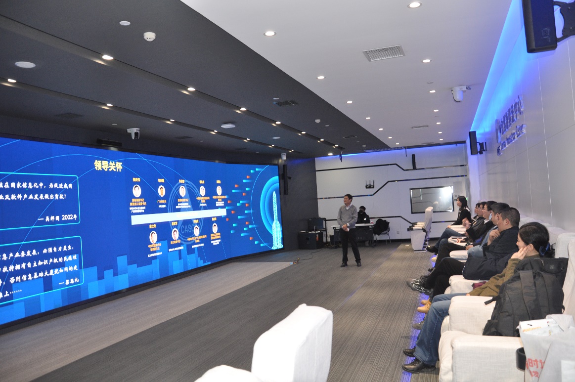 交流会之前,王忠杰教授一行参观了神软公司展厅,神软专家闫红军、赵明智向大家详细介绍神软公司发展历程及产品研发等基本情况。
