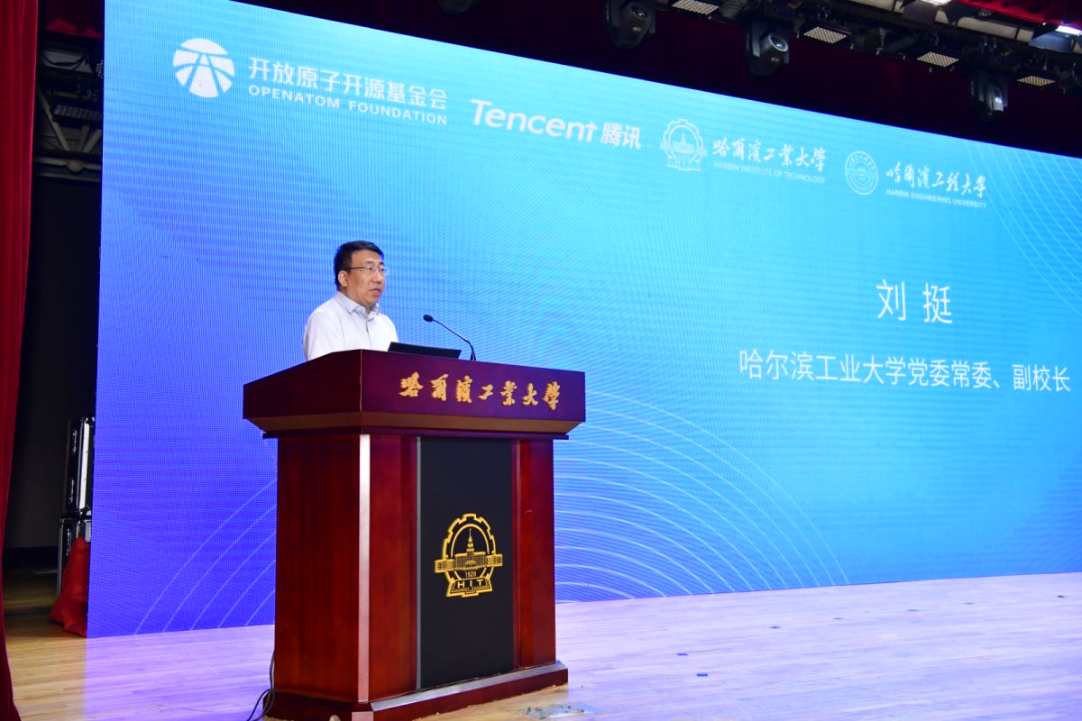 刘挺副董事长表示,高校是开源文化,开源精神,开源思想的重要推动者和贡献者,哈工大产出了一批知名开源项目,打造了开源人才培养体系,营造了良好的校园开源生态,培养了一批开源优秀人才。围绕开源国家战略,哈工大正不断提升开源人才培养和供给能力,提升软件源头创新和供应能力,建设成为开源文化传播的源泉、开源项目的策源地、开源软件根技术的创新基地。