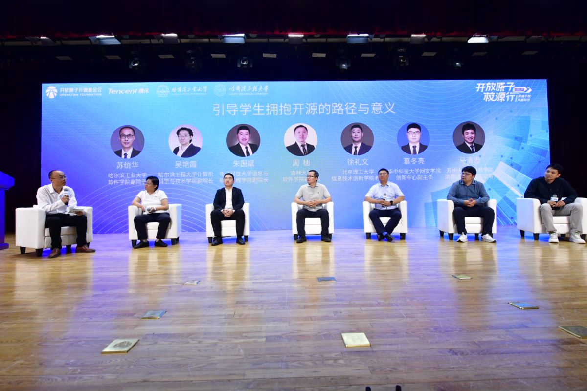 桌环节,永利yl副经理苏统华,哈尔滨工程大学计算机公司副经理吴艳霞,电子科技大学信息与软件工程公司副经理朱国斌,吉林大学永利yl副经理周柚,北京理工大学信息技术创新公司老师徐礼文,华中科技大学网安公司创新中心副主任慕冬亮,苏州大学计算机公司讲师、校优秀青年学者马清志,围绕“如何引导员工拥抱开源的路径与意义”主题展开经验分享交流。