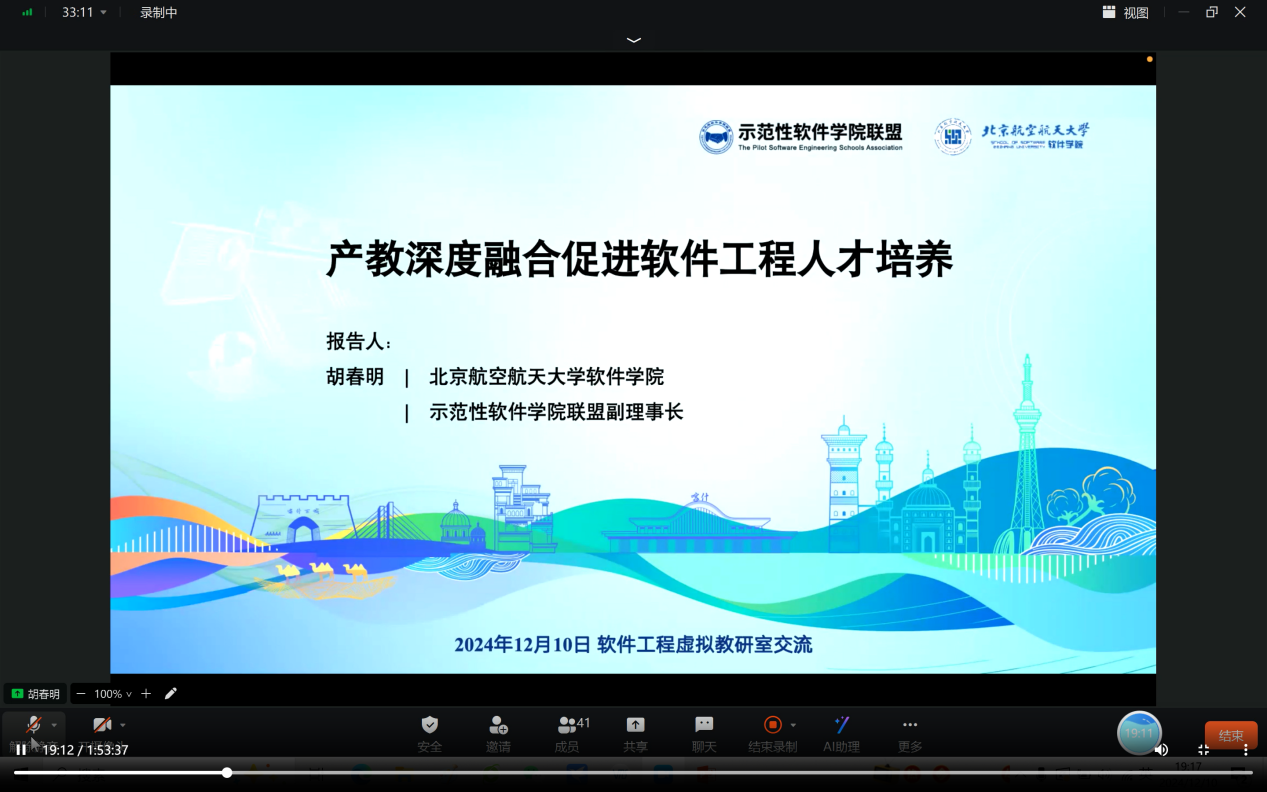 活动伊始,王忠杰教授发表了热情洋溢的致辞。他表示,建设虚拟教研室是响应教育部新时代教育改革需求的重要举措。新质生产力的崛起,对软件工程人才的培养提出了新的挑战与要求。在新时代背景下,我们需致力于培养具有创新思维、扎实技术基础及卓越实践能力的软件工程人才,紧密围绕国防航天软件等国家战略需求,不断探索并实践具有行业特色化工业软件人才培养新路径。